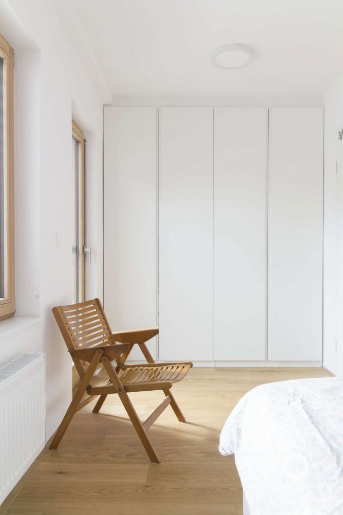 V nadstropju smo šivalnico, ki je bila večji prostor, preuredili v kopalnico, manjšo sobo pa smo delno povezali s hodnikom in tako ustvarili prostor primeren za spalnico z lastnim balkonom in pogledom na vrt.