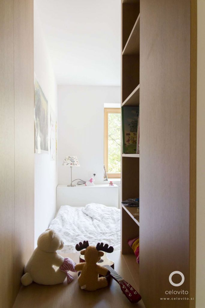Na najvišjem nivoju je ostal prostor za dve otroški sobi ter šivalnim kotičkom na vrhu stopnišča.