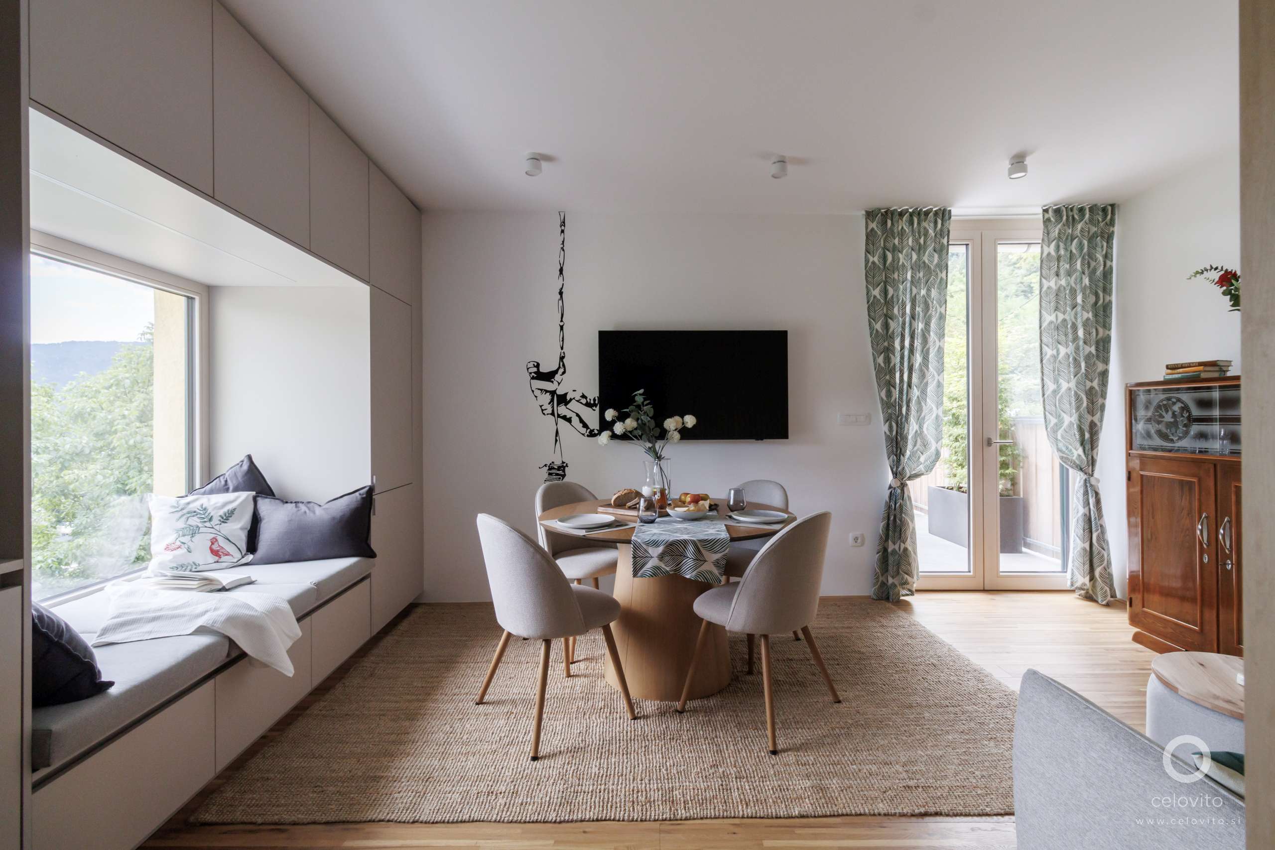 S temi posegi smo ustvarili funkcionalne, stilsko usklajene in vizualno bogate prostore. Omogočili smo privatnost z nezanimive druge strani s cesto. Majhno stanovanje je tako dobilo veliko srce in neprekinjeno povezavo z naravo, kjer Blejsko jezero kraljuje v vsej svoji lepoti.