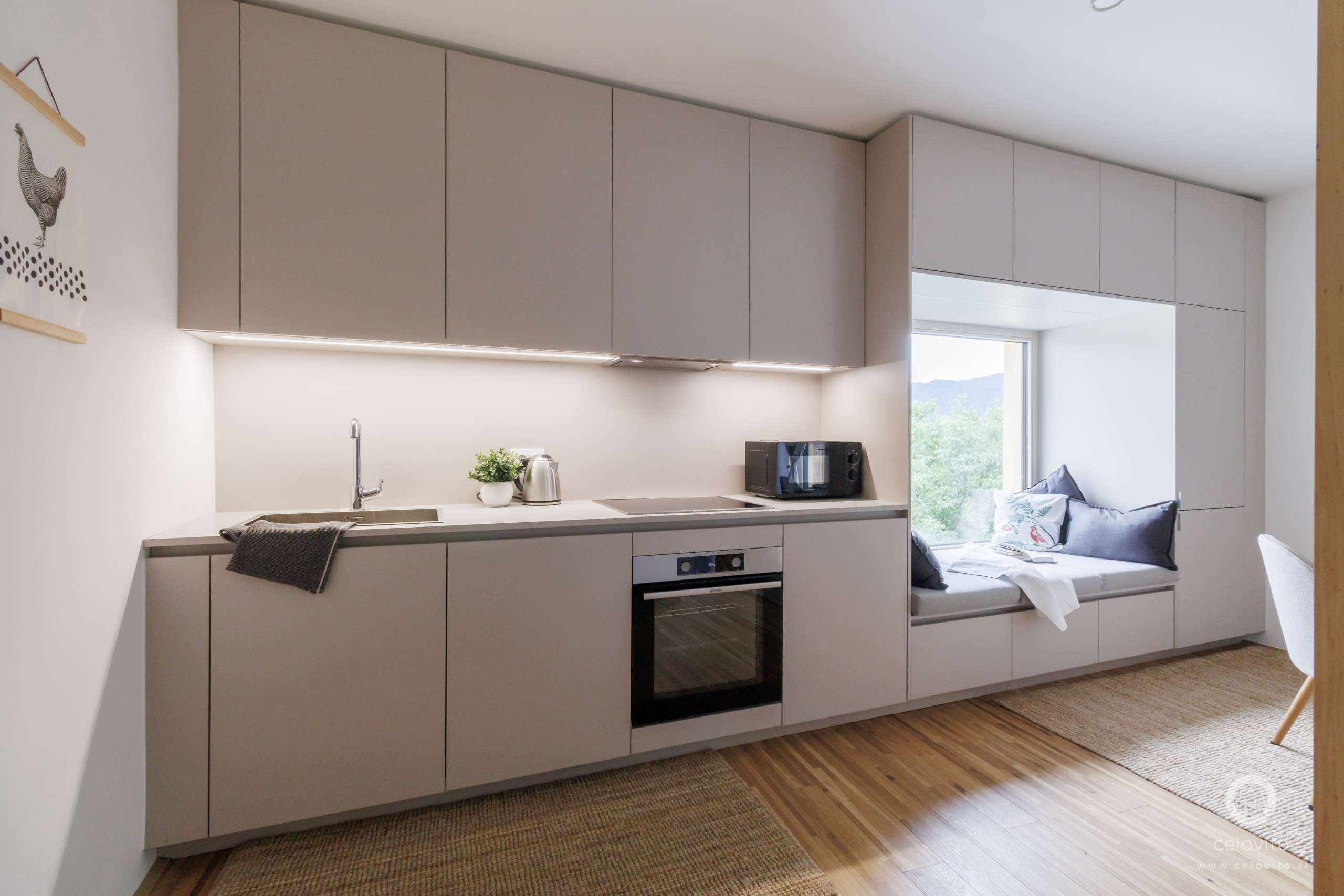 Prej temen in prenatrpan prostor, zdaj kuhinja in jedilnica s sprostitvenim kotičkom ob oknu.